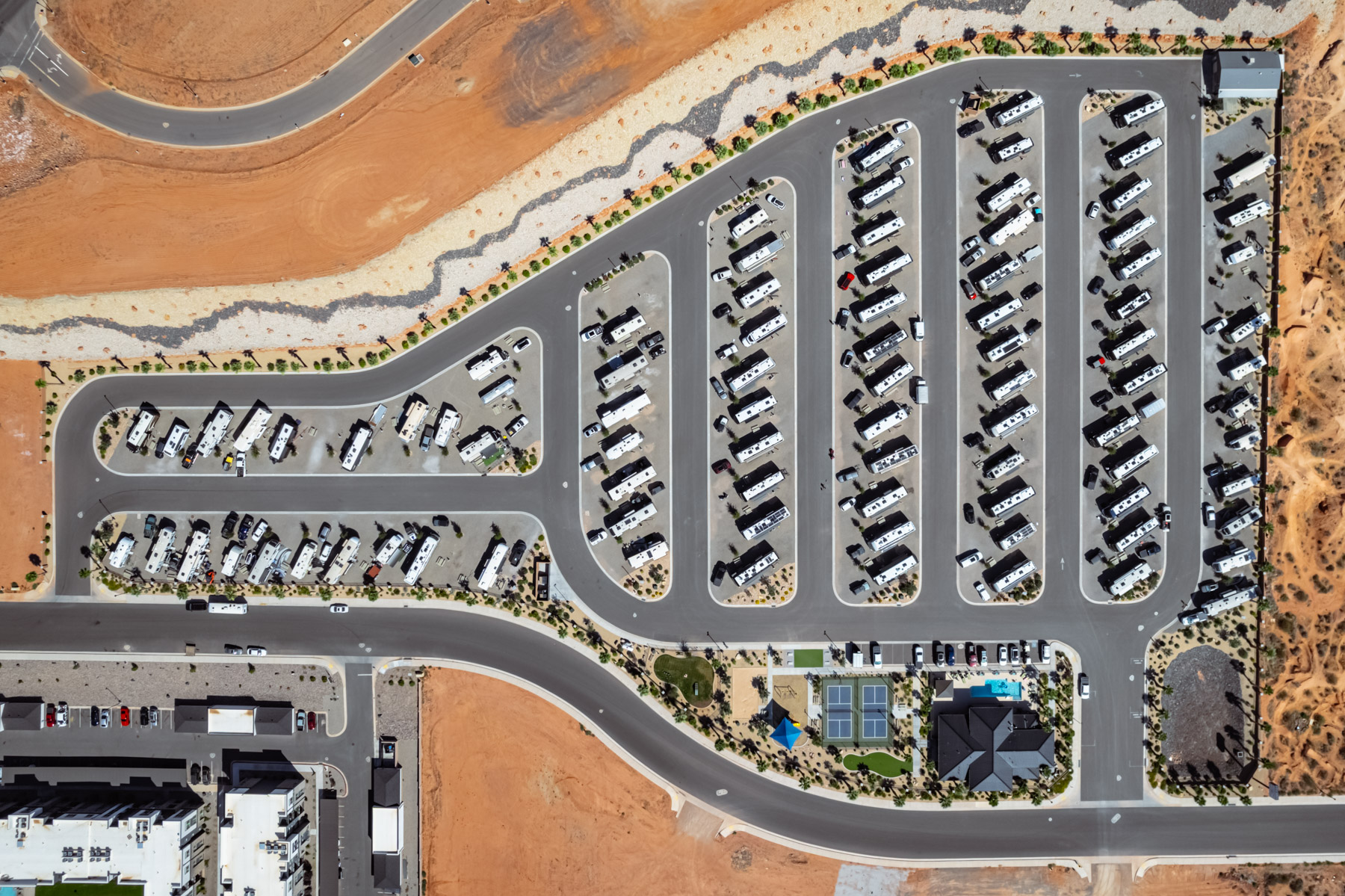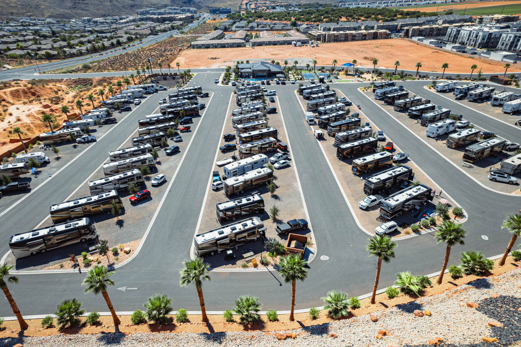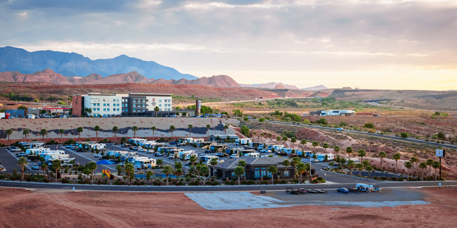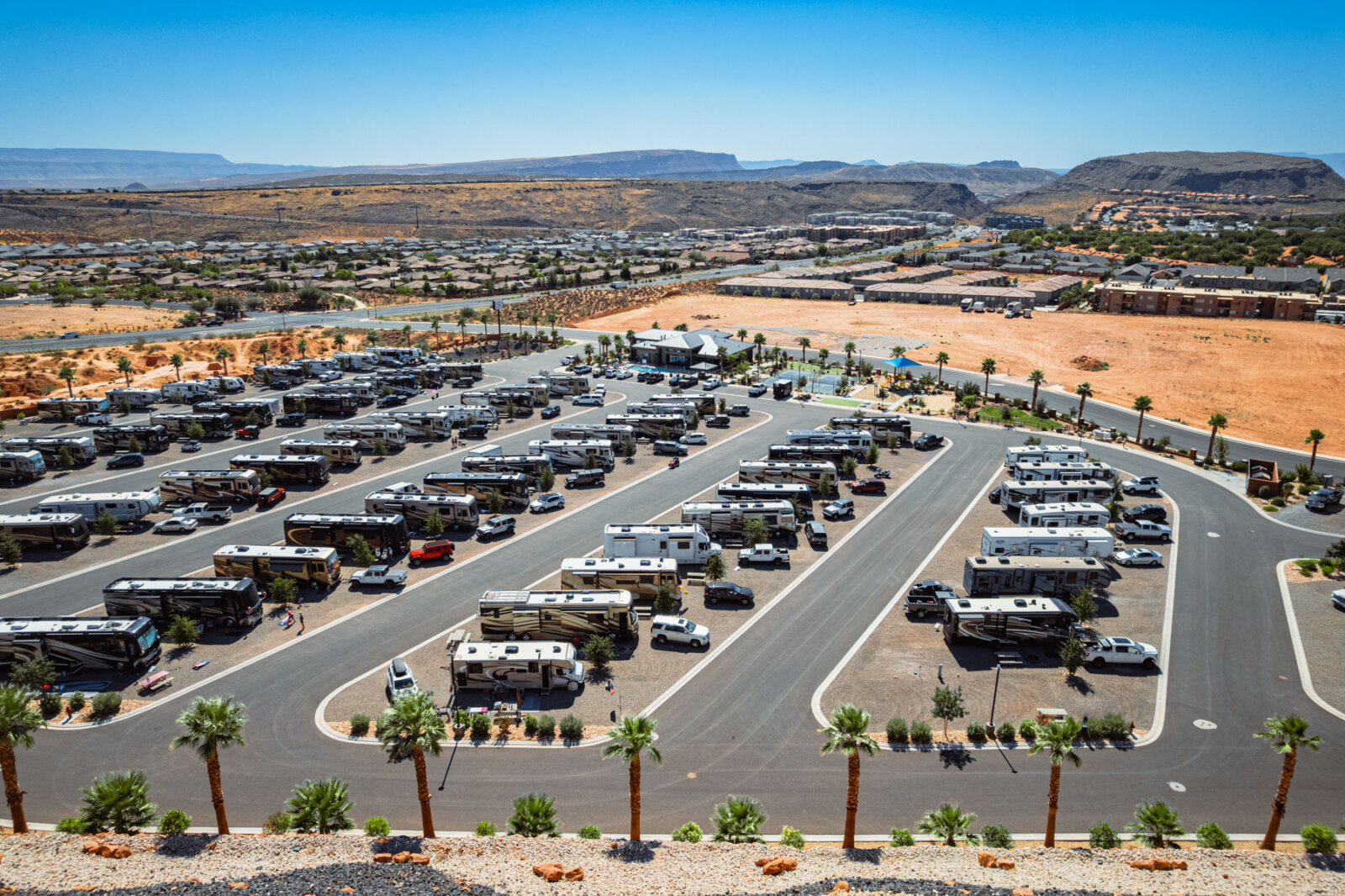 Settlers Point Luxury RV Resort combines full-hookup RV sites with resort-style amenities designed for comfort and convenience. The property sits in Washington, Utah, 20 minutes from Zion National Park and 10 minutes from Sand Hollow State Park. Spacious RV sites, a year-round heated pool and hot tub, lighted pickleball courts, a fenced dog park with agility equipment, and a modern clubhouse give you everything you need for a relaxing stay while exploring Southern Utah.
